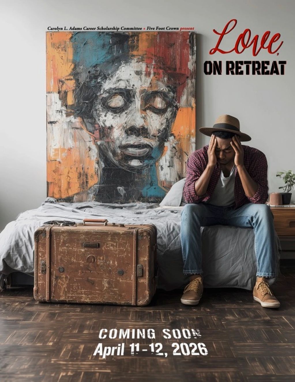The Carolyn L. Adams Career Scholarship Committee and Five Foot Crown present Love, On Retreat, a new theatrical experience exploring what happens when three couples come together to laugh, cry, and measure if the weight of relationship has become too heavy to carry or too precious to let go.